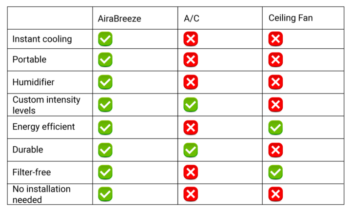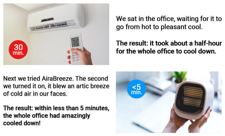OUR STORY STARTS HERE: THE AIR CONDITIONER INDUSTRY HAS BEEN RIPPING PEOPLE OFF FOR THE PAST DECADE. 3 big companies. They could set any price they wanted, pushing a mediocre product. Their main product: traditional Air Conditioning Units. They are outdated, expensive, noisy, dangerous to clean, and cost a fortune in electricity. AND you can’t move them around the house! As portable alternatives, the AC industry has been promoting fans. Yes, they are cheaper, but they only blow the air around. What if the air is hot? It will just make you feel hotter. Could things get worse for Brits? SADLY YES – the national weather services are reporting that it is going to be a super hot summer, one of the hottest for decades. Meaning the electricity bills will skyrocket in a few months! Could this new type of cooling technology be the savior? Meet AiraBreeze. The company behind the AiraBreeze recruited leading industry engineers to change everything we know about Air Conditioners. Their goal was to make a low-cost, low-maintenance AC unit that is suitable for any home, office or car. And they succeeded! AiraBreeze has stunned the A$135B AC industry with their innovative model. Why? Compared to the traditional AC, it’s 300% more efficient, smaller, portable, and it cools any room much faster- in less than 5 minutes! AiraBreeze utilizes a new Insta-Cool™ Technology Cooling System that allows everyone to make hot rooms & sky-high energy bills a relic of the past. Based on recent data, it saves 50-75% of electricity compared to traditional air conditioners. It’s safe to say, AiraBreeze is the next generation of AC units! We had to put these claims to the test. Our verdict? There’s NO comparison, the AiraBreeze is the clear winner. And it makes sense… AiraBreeze’s technology is much faster because it uses water to cool down the incoming air, and then it pumps out freezing cold air on the other side. Just fill up the 300ml/10.1 oz tank with water and press the start button! Which brings us to the big question… Simply fill the 300ml/10.1 oz tank with water. Turn it on, The Insta-Cool™ Technology Cooling System will turn hot muggy air into icy cold air in seconds. During our tests, we found out that just one fill of the AiraBreeze tank can last for an entire day! In addition, the AiraBreeze offers 3 modes to control the temperature of your room: Low Mode – a relaxing cool breeze; Medium Mode – for if you’re feeling warm; Turbo Mode – for if you need to cool down any space fast. The best part? You can run it using any USB-C port – even your laptop could power it! This means you can take it to any room you want, the office, garage, kitchen… Get instant relief from the heat wherever you go. Now you and your family can stay comfortable and cool without having to worry about your electricity bills or power outages. The AiraBreeze technology and its unique features speak for themselves: Set your mode – create a gentle breeze or switch turbo for instant cool. Whichever you like & need for the moment. Air quality control – it can act as a humidifier. If you want a clean, fresh, and humidified air, AiraBreeze can provide this for you. Fast and efficient – AiraBreeze generates REALLY COOL AIR, FAST! In just seconds enjoy Rapid Cooling as AiraBreeze pumps out refreshing air. Different speeds – 3 fan speeds. Set it to your optimum comfort level. Easy to use – very easy to refill with water when it runs low. Big capacity 300ml/10.1 oz tank. Lightweight – compact and easy to carry. Weighs less than 2 pounds. Extremely quiet – No loud, obnoxious fan noise to disrupt your concentration or sleep. Full control – Adjustable vents to direct cool air wherever you want it. No-hassle installation or maintenance – AiraBreeze requires no installation or regular maintenance. Just plug it in and enjoy! …and that’s not all! When you’re inside all the time, indoor pollution only gets worse. Even particles from your clothes and hair travel the air. When the temperature rises, certain pollutants are more likely to be released indoors, which can affect the air quality in your home. So, it’s important to stay aware and take steps to keep your indoor environment clean and cool, especially during those hot summer days! Q: Does AiraBreeze require any installation? Q: Do I need to buy my own batteries? Q: Is the AiraBreeze safe to use when sleeping? “We’re disgusted by how greedy the big AC industry is and we wanted to give them the middle finger. So…” And here’s where the story gets even more interesting… As we all know, traditional AC units go for A$800+ without the installation and maintenance, so you would expect the AiraBreeze to cost around as much… But the founders decided to retail the AiraBreeze for the friendly price of A$59.99 (regular price A$119.98) with a big 50% discount – and it already sold out x3 this summer in Australia! EVEN BETTER, if you order more – you get a bigger discount. The best-seller 3-pack of AiraBreeze Air Coolers goes for just A$47.49 each. THAT’S A BIG 70% OFF. Click here to claim a discounted AiraBreeze (if it’s still available) >> If you ask us, that’s a tiny price to pay for a brand new, ultra-efficient AC keeping you cool this summer. In the words of the founders: “Did you know big brands spend BILLIONS on advertising, physical stores, and boss bonuses? Can you guess who’s paying for that? Yep, YOU, the customers… At AiraBreeze, we spend nothing on any of this. We sell online and on trusted retailers, don’t advertise on TV, and we’re no greedy owners who demand ridiculous bonuses. We prefer to let our devices and positive reviews do the talking for us!” The answer is a certifiable YES. With summer around the corner, the AiraBreeze is the cheapest and best way to stay cool and comfortable. It feels like a A$800 product priced at A$47.49 (with your exclusive 70% discount). Our advice? Get your AiraBreeze now before 